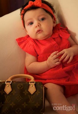 Com apenas quatro meses de idade, a pequena Maysa, filha de Tânia Mara e Jayme Monjardim, ganhou sua primeira Louis Vuitton , o mimo foi presente dos padrinhos Lilian e Renato Aragão.