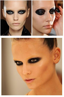 Atenção especial para a beleza do desfile, feita pela maquiadora Pat MacGrath. Esse olho preto foi sensacional! A pálpebra superior com sombra preta bem forte e esfumada, chegando até perto das sobrancelhas, que estavam um pouco mais apagadas e os lábios bem pálidos.