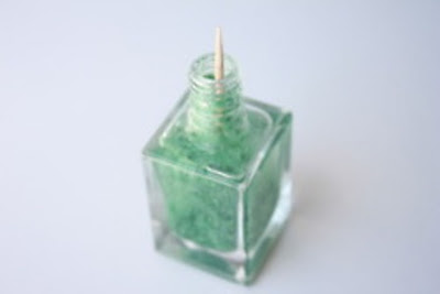 Use um palito para misturar a cor dentro da vidrinho. Agite até que o pó seja distribuído de maneira uniforme.