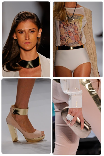A Ausländer apostou no dourado metalizado em várias peças, acessórios e detalhes na maquiagem. Além das estampas florais e de super heróis.